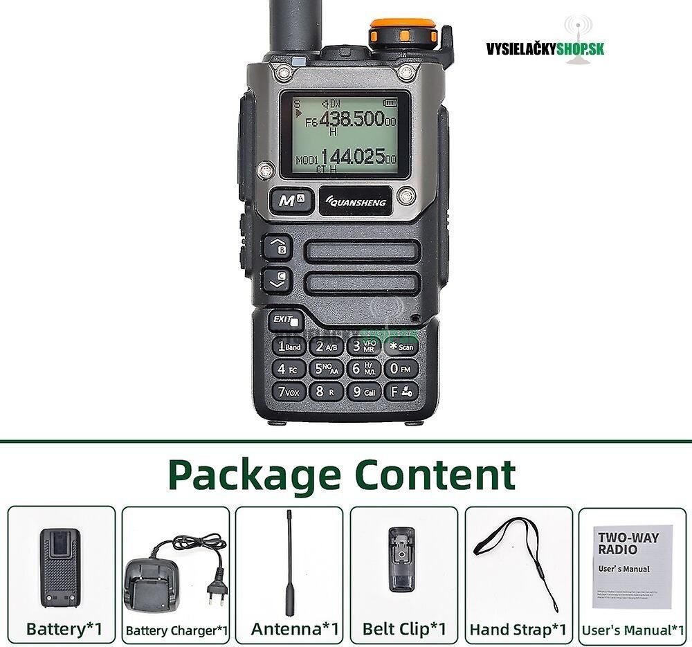 Dualband vysielačka Quansheng UV-K5(8)v2 VHF UHF 5Watt s príjmom v celom rozsahu 50-600MHz, AIR band, USB-C nabíjanie, pamäť 200kanálov + stojanovy nabíjač quansheng.