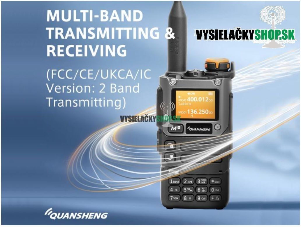 Dualband vysielačka Quansheng UV-K5(8)v2 VHF UHF 5W s pokrytim VHF a UHF pásma a príjmom v leteckom pásme.