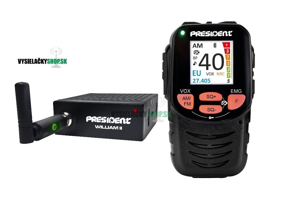 Nova vysielačka President William II je už druhou vylepšenou verziou vysielačky President William kde celý ovládací panel vysielačky sa nachadza na mikrofone. V predchadzahucej verzii President William bol mikrofon a telo vysielačky prepojený káblom, dnes u verzie William II BT je celý ovladaci panel s mikrofonom a reproduktorom spojený s telom vysielačky bezdrôtovo.
