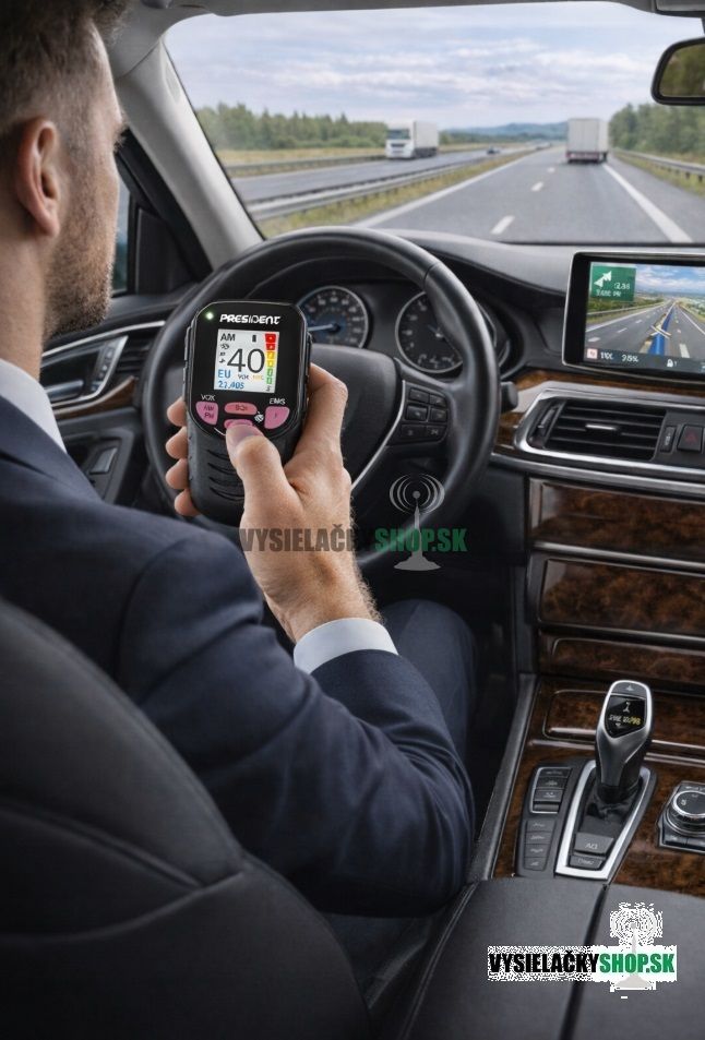 Bezdrôtový Mikrofon s reproduktorom a celým ovládanim President William môžete umiestniť do držiaka na palubnu dosku alebo ponechať v držiaku na napoje a tak podobne, vyhnete sa tým nutnosti mať mikrofon President William prepojený kablom s vysielačkou a viete si vysielačku President William esteticky uložiť v kabine tak ako vám to vyhovuje, bez obmedzenia káblom.