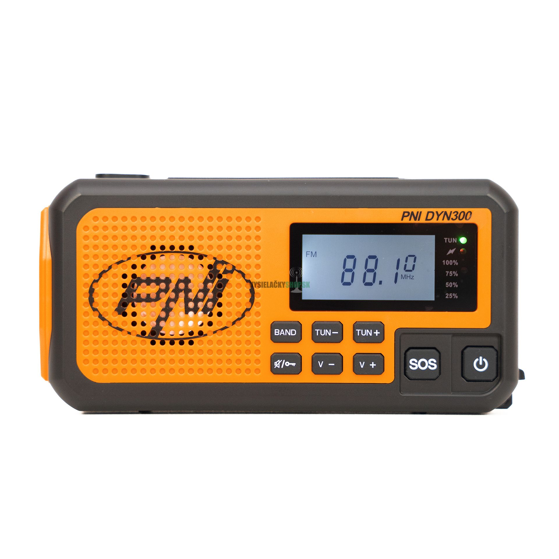 Prenosné rádio PNI DYN300 s dynamom, solárnym nabíjaním, svietidlom a powerbankou 4000 mAh